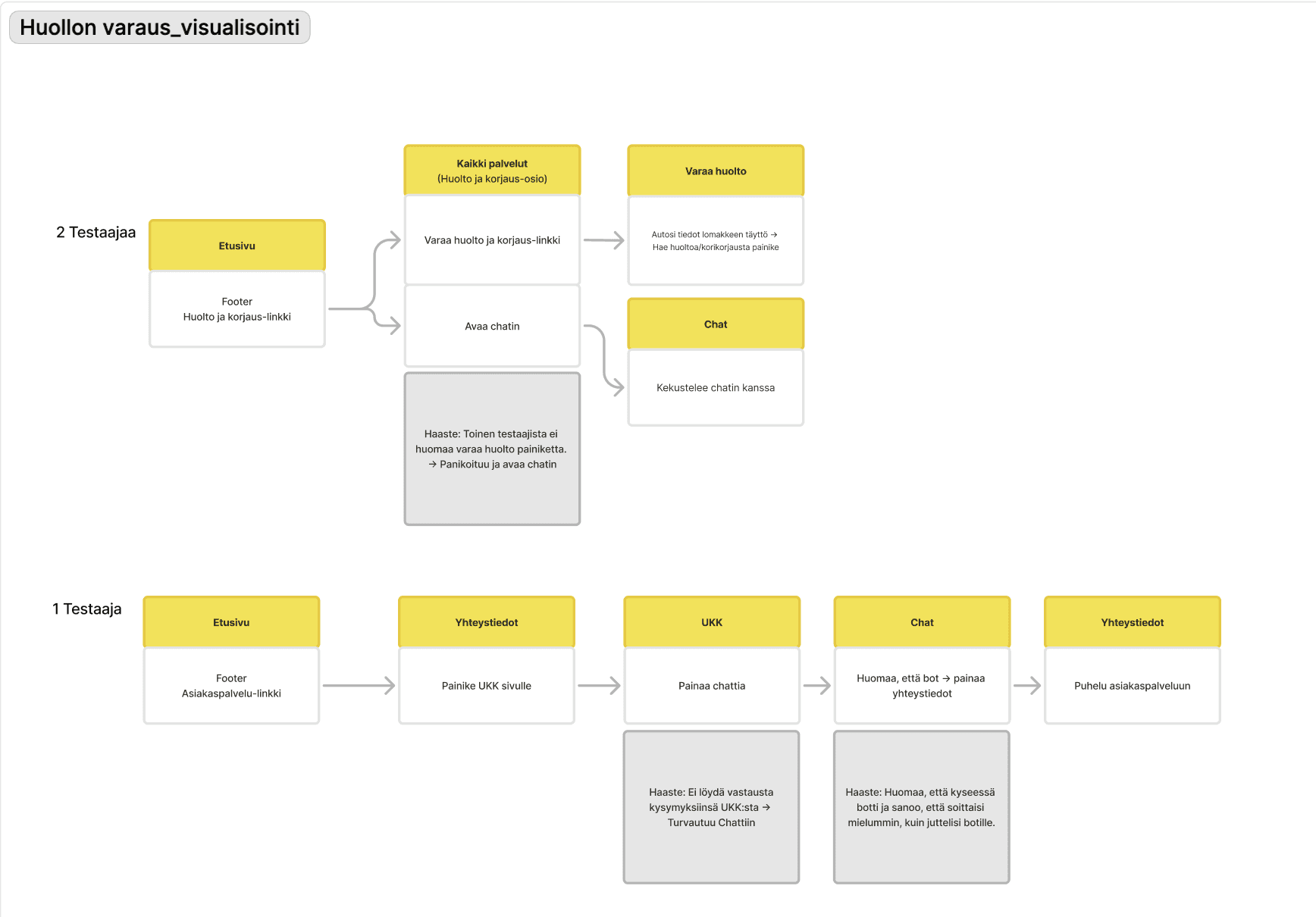 At this point, I felt we had gathered enough background information and it was time to validate our assumptions through usability testing. I collaborated with the team to design the test and was responsible for synthesizing the key findings from the test sessions. We then conducted user testing with five participants from the target group which provided valuable insights into how users search for car maintenance services—and how the current structure could be improved to support a more intuitive experience.