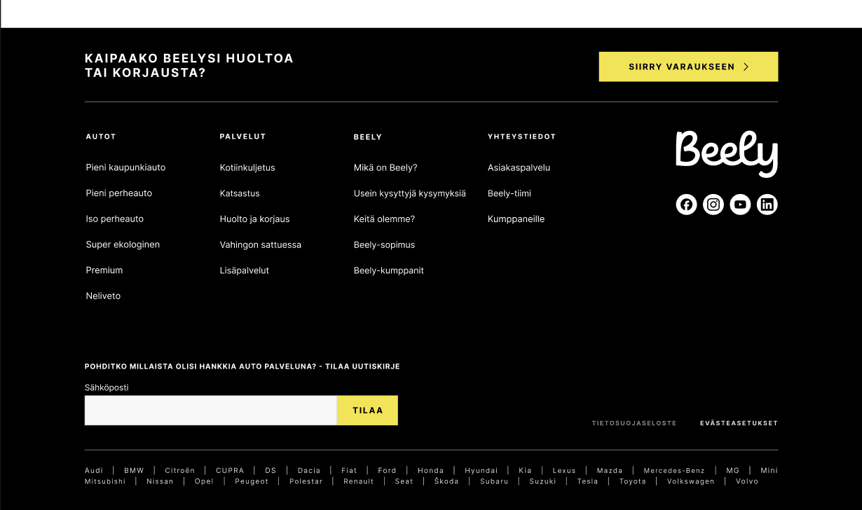Our client, Beely, aimed to reduce customer service support requests related to car maintenance bookings by improving the clarity and usability of their digital platform. This project was part of the Metropolia Notio Design production.