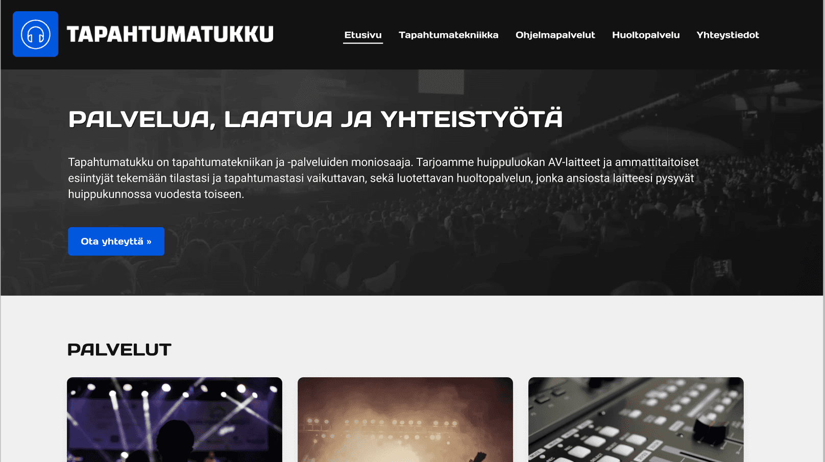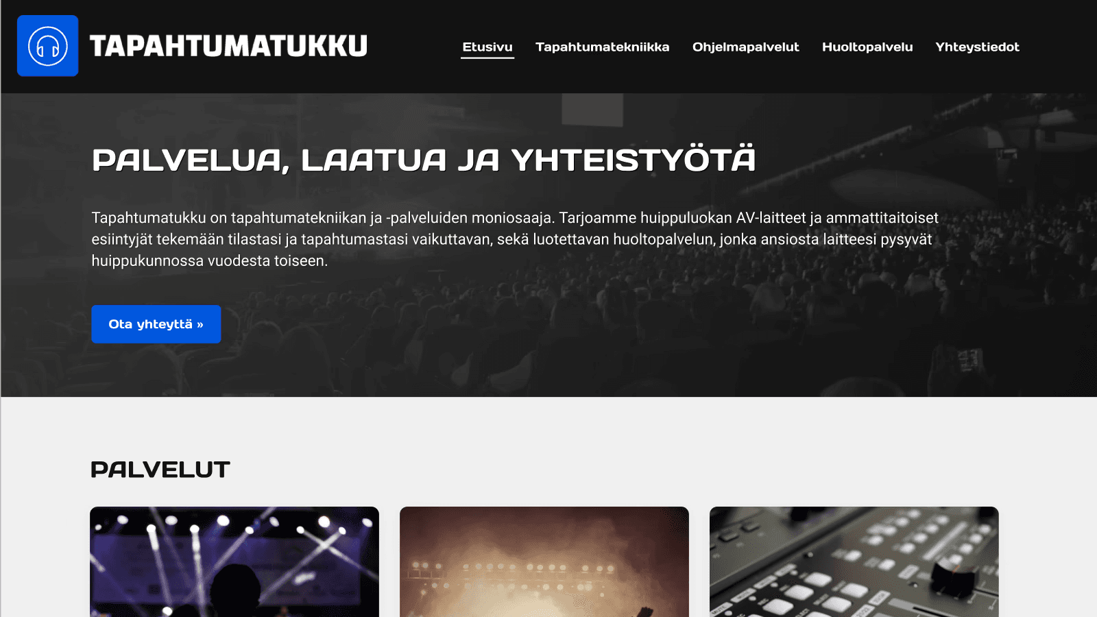 Our client, Tapahtumatukku, aimed to reduce phone-based customer service requests by improving how urgent maintenance issues are reported through their website. In addition, the company needed a refreshed site structure, as their business had evolved since the original website was launched and many subpages were no longer relevant. This project was part of the Metropolia Notio Design production.