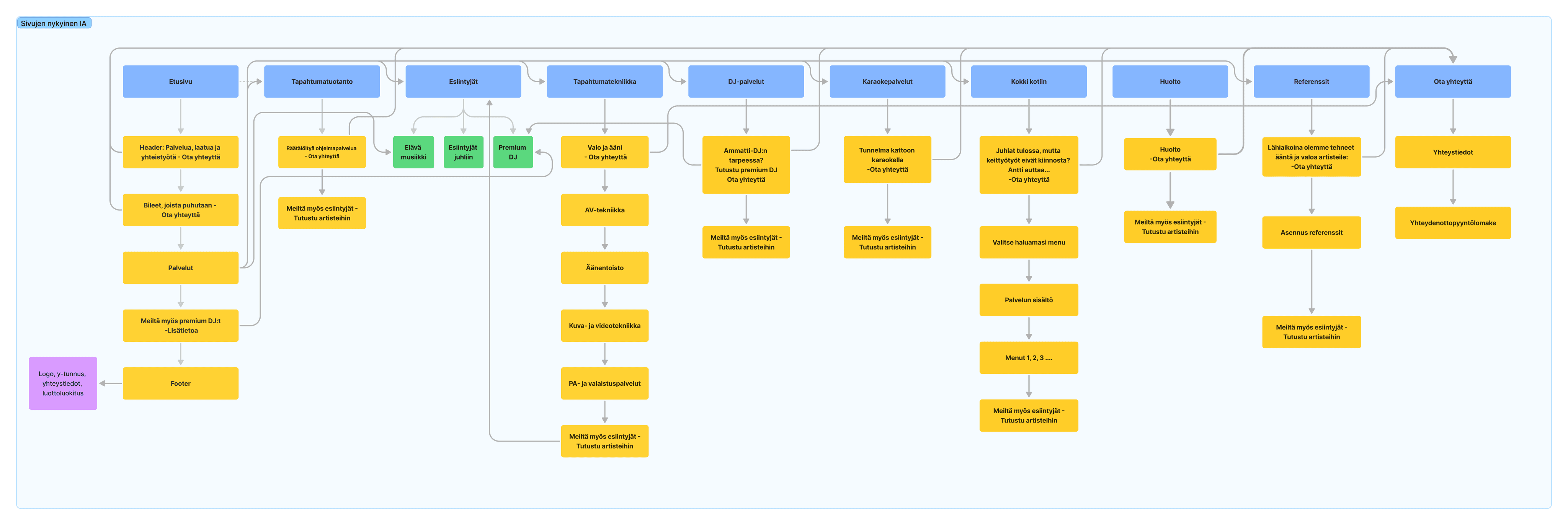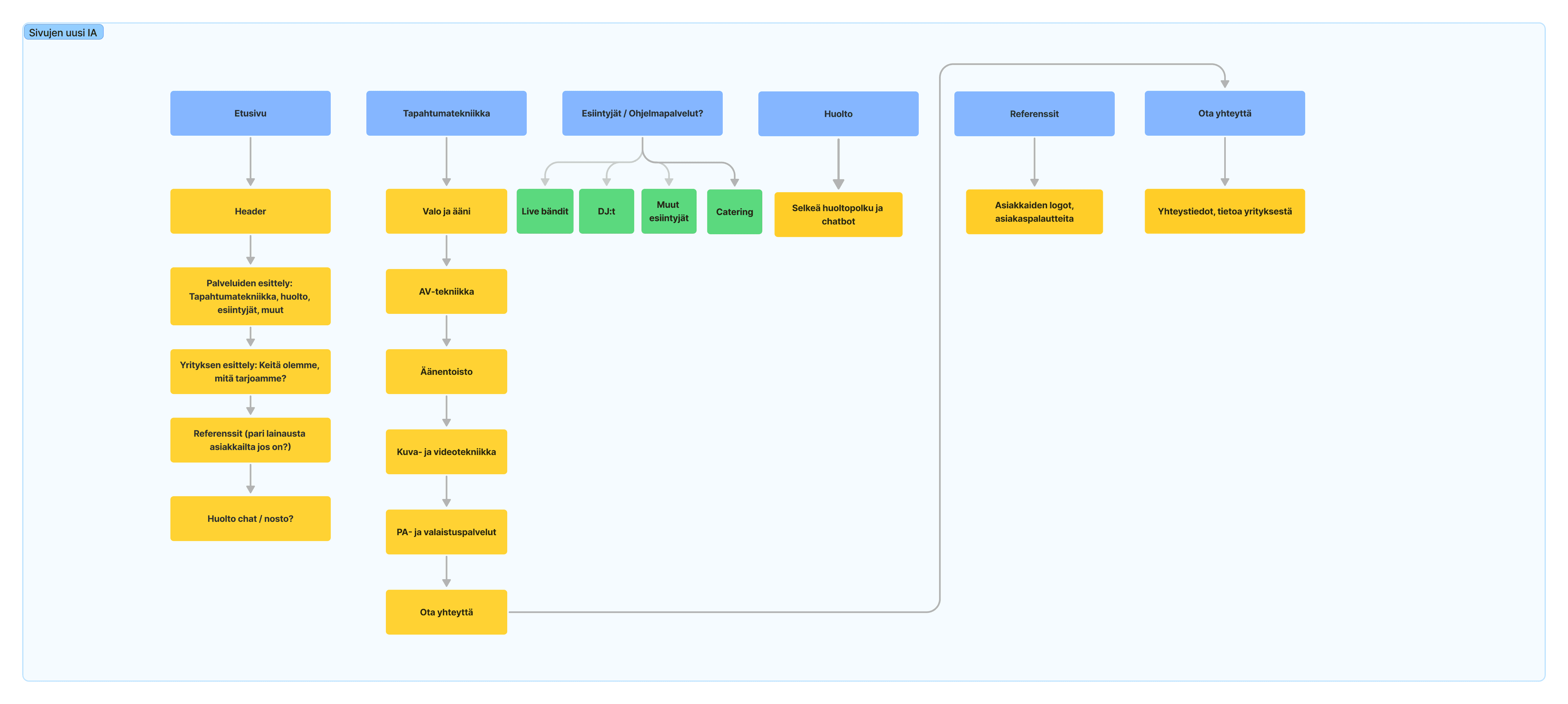 I directed the team to start with an in-depth review of the existing website, including information architecture (IA) mapping and a competitor analysis. This helped us understand how similar businesses position their services and handle urgent maintenance requests—and how Tapahtumatukku’s site could better reflect its current offerings.