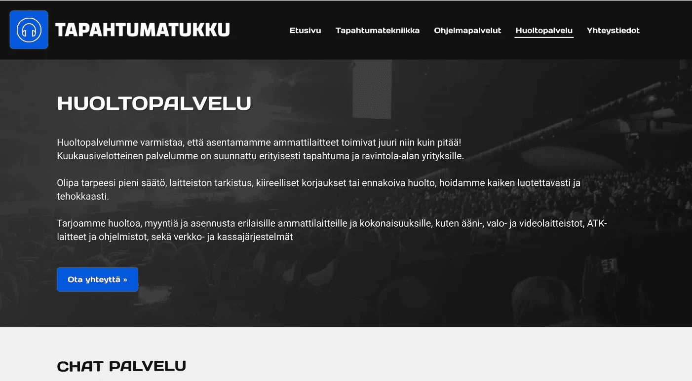 Tapahtumatukku provides lighting, sound systems, karaoke equipment, and other technical solutions—mainly for restaurants—and handles both sales and ongoing maintenance for its customers. Tapahtumatukku wanted to improve how urgent maintenance requests are handled through their website. Many customers currently contact customer service by phone. As a small company, Tapahtumatukku often receives multiple calls at once, making it difficult for staff to respond and prioritize requests in a timely manner.